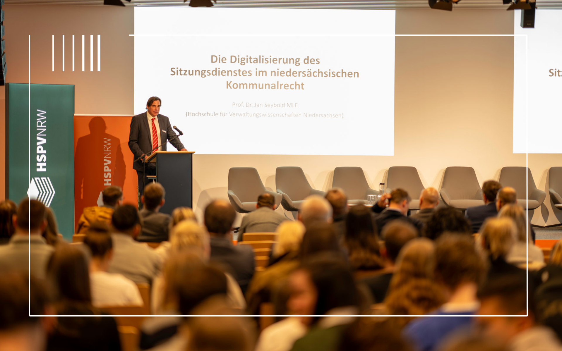 Unter dem Titel „Smarte leader für smarte cities" trafen sich kürzlich an der HSPV NRW in Duisburg Vertreterinnen und Vertreter aus Praxis und Wissenschaft zum Austausch über kommunale Themen. Mehrere Hauptverwaltungsbeamte, teils aus Baden-Württemberg und Thüringen zugeschaltet, zumeist aber in Präsenz, ein Vertreter der Spitzenverbände sowie Lehrende und Studierende fanden an der Hochschule zusammen. Prof. Seybold trug zum Thema „Die Digitalisierung des Sitzungsdienstes im niedersächsischen Kommunalrecht" vor. Das Symposium orientiert sich inhaltlich an der im Jahre 2012 initiierten Veranstaltung, die mittlerweile als NSI-Fachtagung Kommunalrecht firmiert und am 01.12.2026 bereits zum 14. Mal stattfindet.